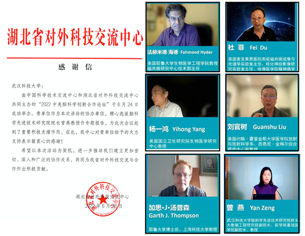 金年会網訊 6月24日,由中國科學技術交流中心和湖北省對外科技交流中心主辦,金年会聯合武漢大學、華中科技大學和中科院精密測量科技創新研究院協辦的“2022年中美腦科學創新合作論壇”通過線上線下結合方式舉辦。